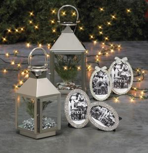 - This lantern may be small but it packs a big punch of style! The sleek stainless steel frame and clear glass panels will let the light of your favorite candle shine bright. It features a generous top hanging loop.